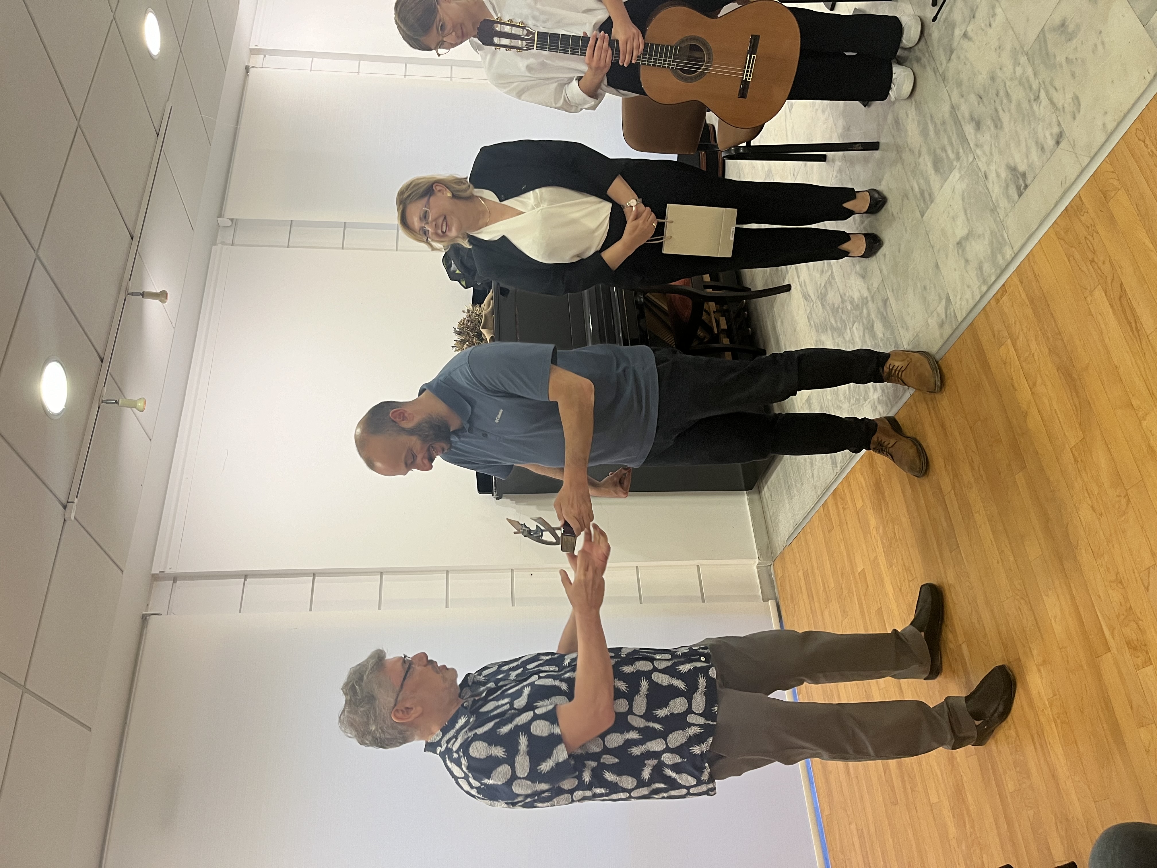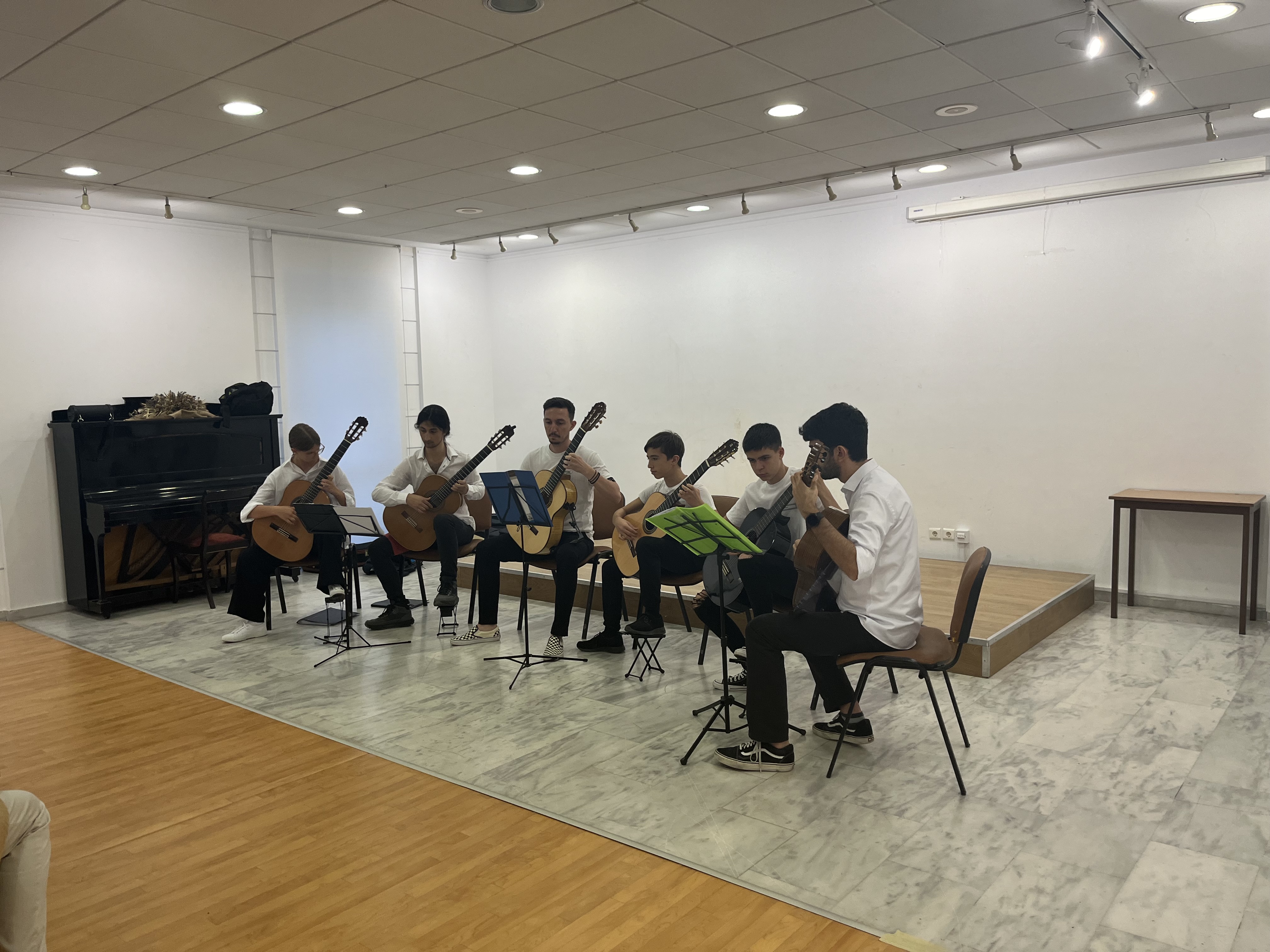 Οι επισκέπτες είχαν την ευκαιρία να χαρούν εκτός από τα φωτογραφικά έργα του καλλιτέχνη και μουσικά κομμάτια ενδεικτικά χρονικών περιόδων στην ιστορία της μουσικής από το κιθαριστικό σύνολο " Το μουσικό κουτί ".