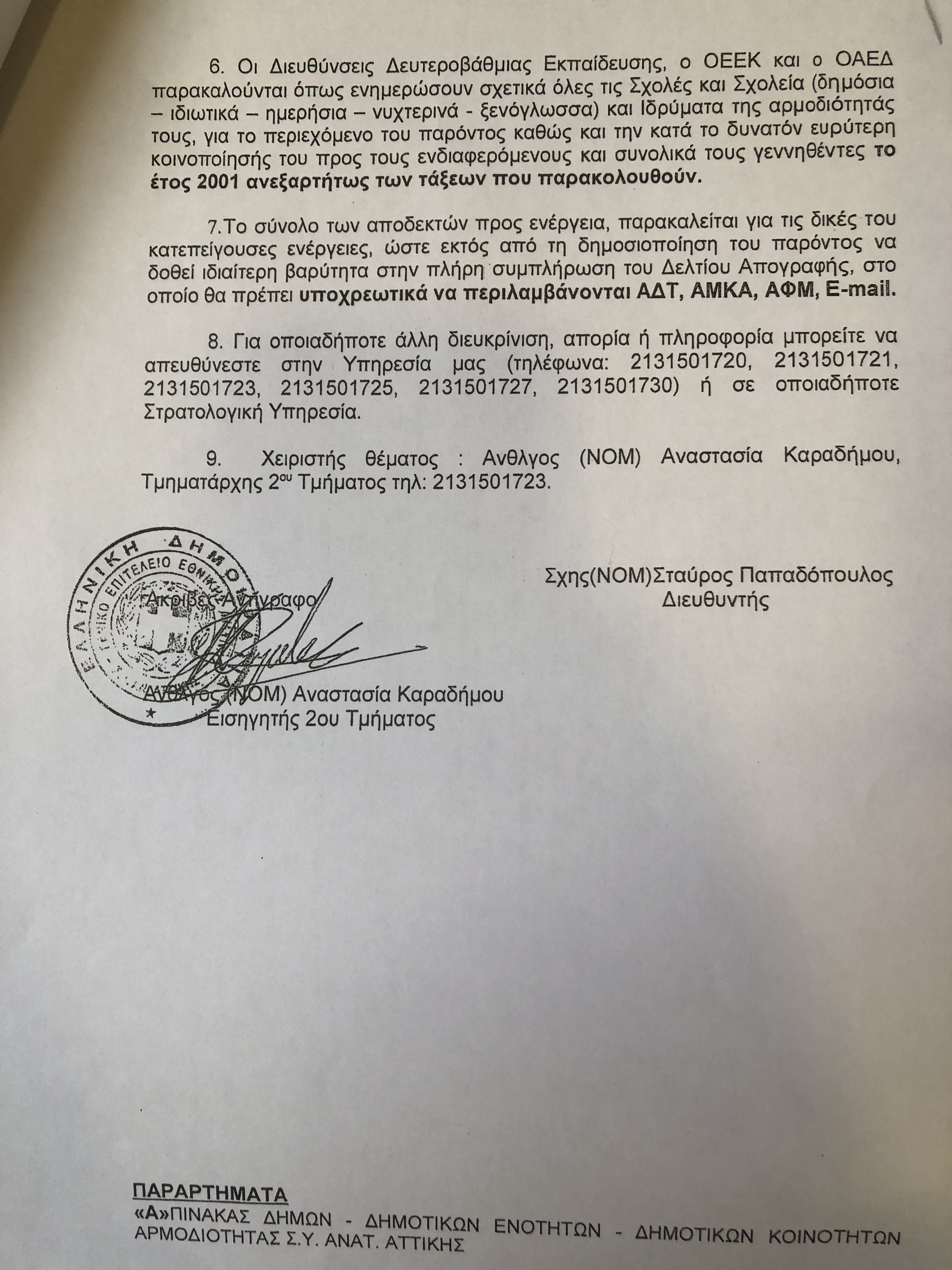 Πρόσκληση Στρατεύσιμων Κλάσης 2022 (Γεννημένων το έτος 2001) στις Στρατολογικές Υπηρεσίες για Κατάθεση Δελτίου Απογραφής.