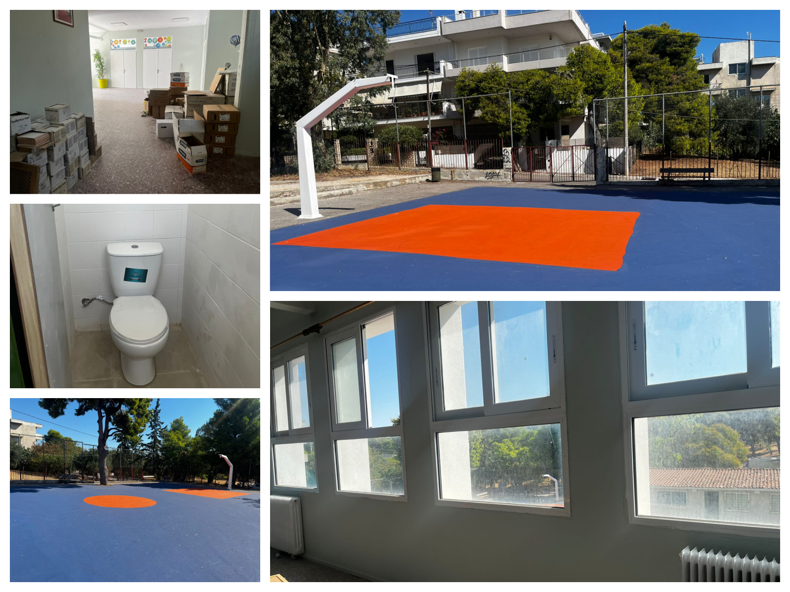 Πιο συγκεκριμένα, έχουν ολοκληρωθεί όλοι οι ελαιοχρωματισμοί εσωτερικά και εξωτερικά του σχολείου. Έχει γίνει ανακατασκευή του δαπέδου του γηπέδου μπάσκετ, ενώ απομένει η τοποθέτηση μπασκετών και η δημιουργία διαγραμμίσεων. Επίσης, έχουν ανακαινισθεί όλες οι τουαλέτες πλην του ισόγειου, οι οποίες θα ολοκληρωθούν άμεσα.